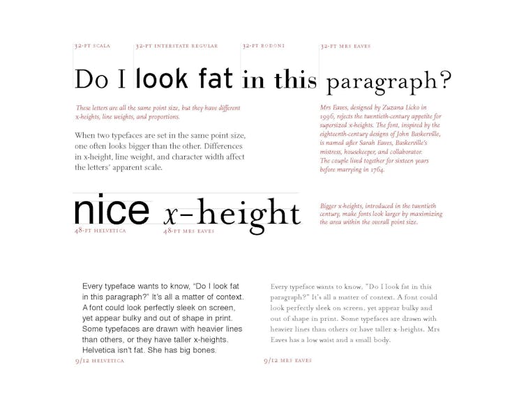 If you are interested in learning more, Ellen Lutpon’s Thinking With Type is the best typographic handbook I know. Look at the website but buy the book.