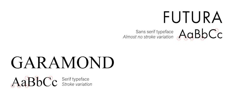 Sans serif typefaces are also simpler than those with serifs. The stroke modulation is generally less marked. In this sense, they seem more functional and less sophisticated. Often used or developed for signage purposes, they appear more utilitarian than scholarly and intellectual.