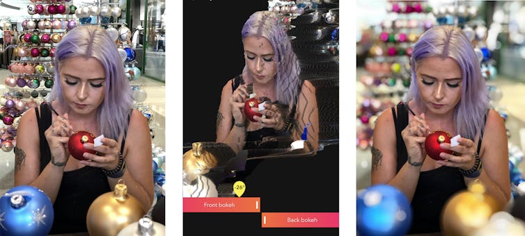 Conventional cameras use long lenses and large apertures (openings for light) to blur the background to emphasise the subject. Smartphones have small focal lengths and fixed apertures so the solution is computational – if your device has more than one rear camera (some, including the Huawei, have three).
