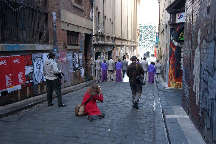 You may see see local “artists” guiding groups on street art tours. You may even see newlyweds looking for that quintessentially Melbourne photo for their wedding album.